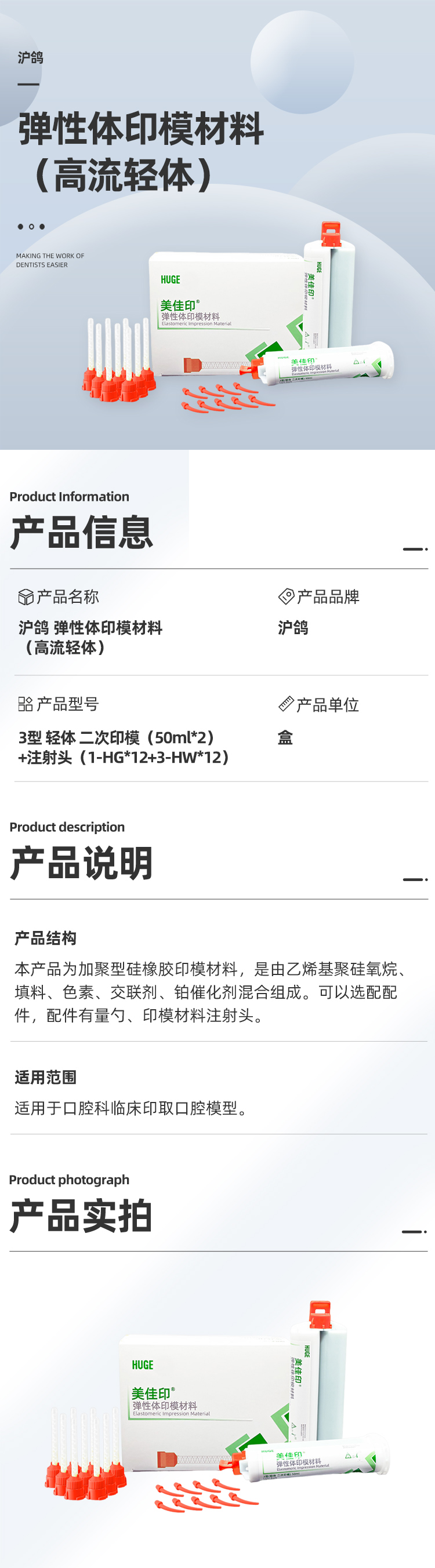 沪鸽 弹性体印模材料(高流轻体)商品编号:0290170001