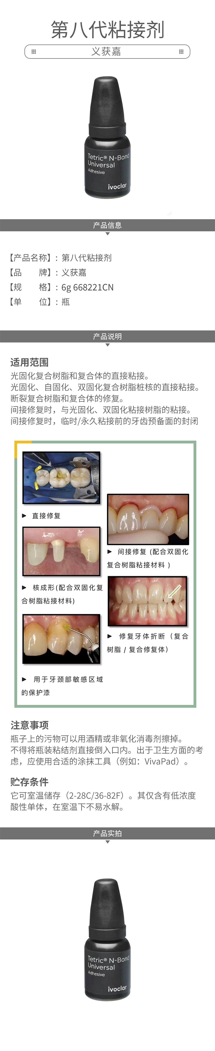 义获嘉 第八代粘接剂/通用型粘接剂/Tetric® N Bond Universal 6g(瓶装)商品编号:0020111001 (粘接效果好&无刺激气味、颜色浅&不敏感。均衡发展选手,值得拥有。)